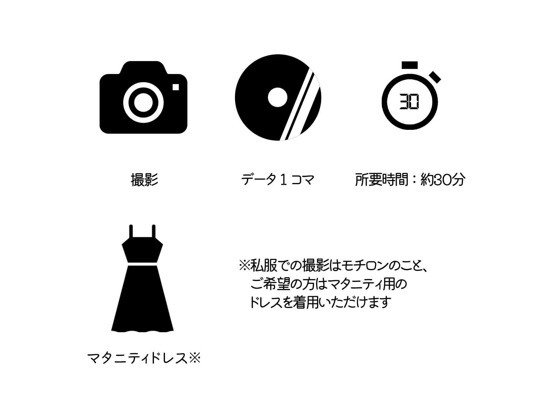 ご出産後のベビーフォトの撮影も無料で行っております。生年月日・出生身長・出生体重を表記して、デザインさせて頂いたデータをプレゼント!マタニティ写真も一緒にレイアウトすることができるので、思い出をまとめて保存できます。ご利用の際は、お電話にてご予約ください。