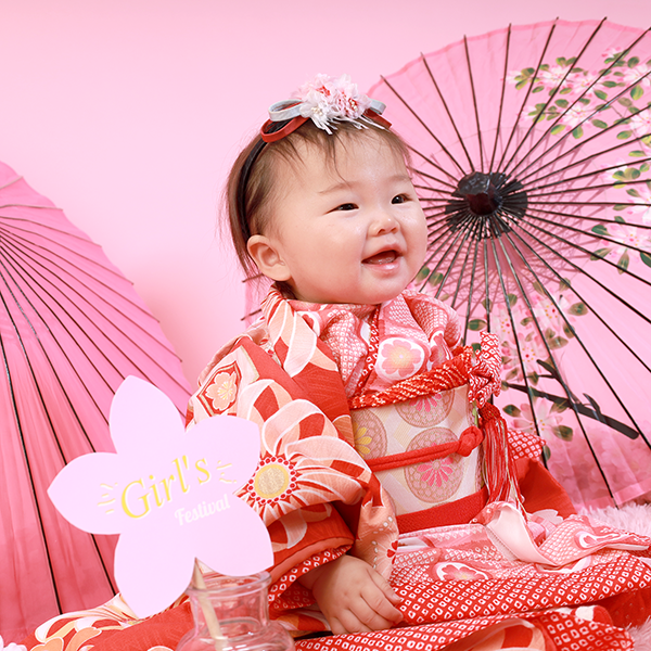 女の子は”美しく幸せな人生を、送れますように” 男の子は”強く賢い大人になれますように”との願いが込められている節句人形。スタジオで華やかに撮影することで、今後の厄も吹き飛ばそう!